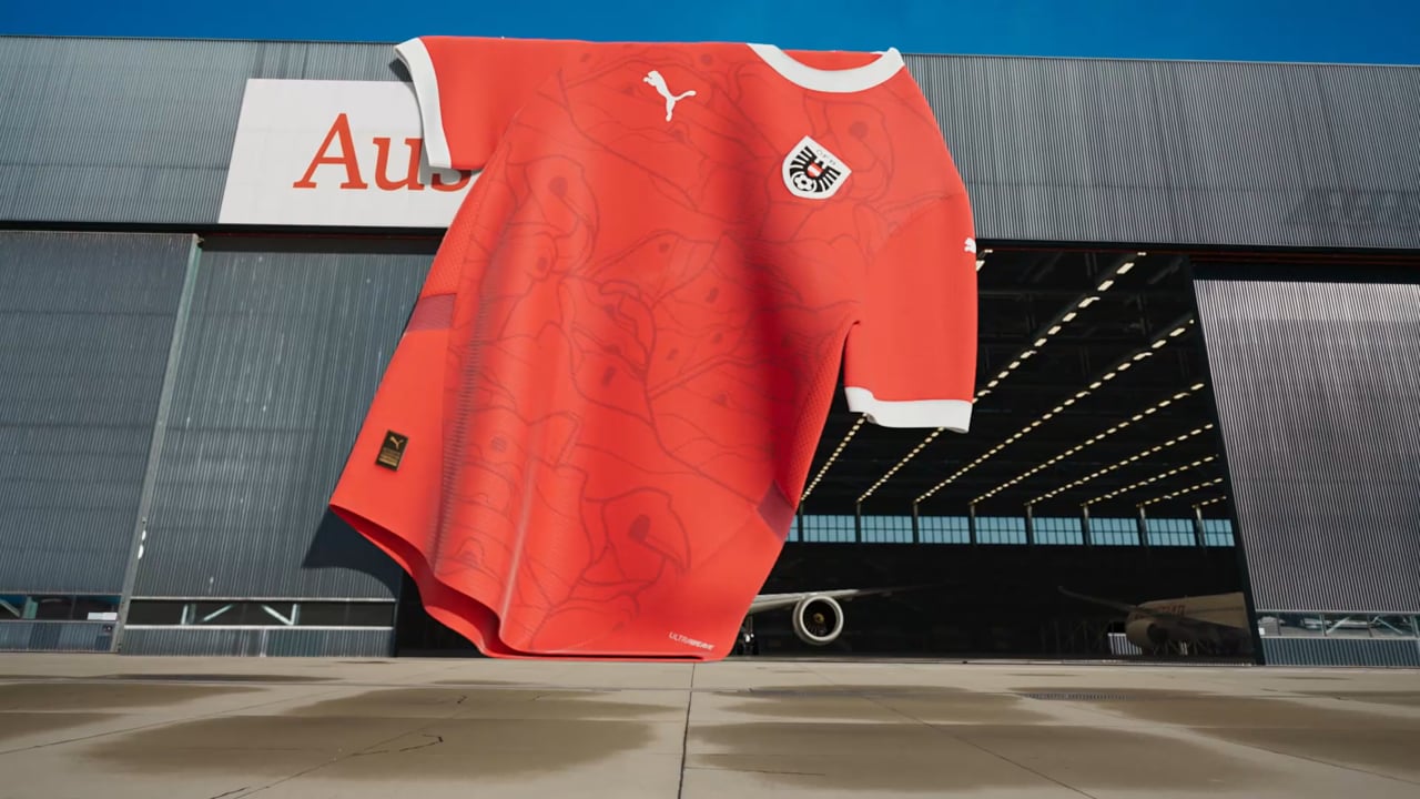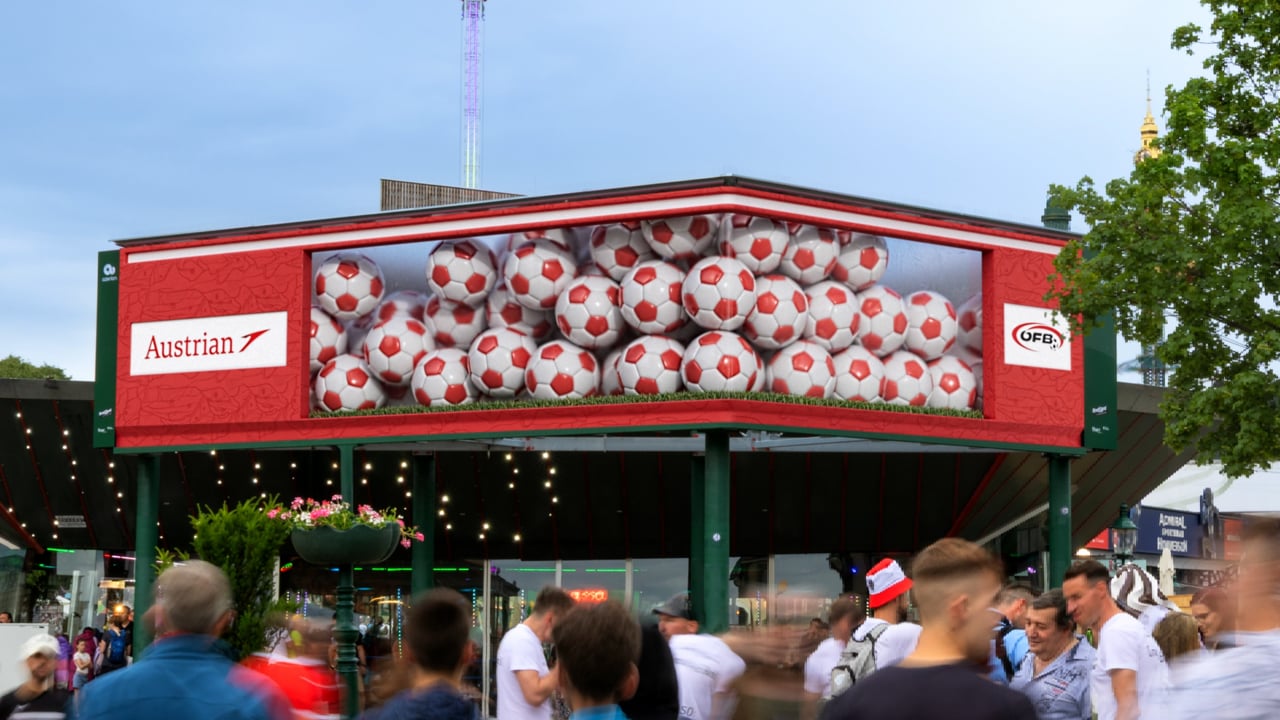 A co-branded campaign for Austrian Airlines and the Austrian Football Association (ÖFB). A fully CGI-rendered national team jersey, fitted onto an Austrian Airlines aircraft and moving in the wind — rolled out across CTV, social and a 3D billboard on Vienna's Prater screen throughout 2025.